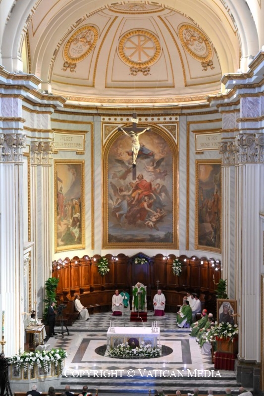Tôi rất vui được ở đây để cử hành Thánh Lễ ngày hôm nay trong ngôi Nhà Thờ Chính Tòa tuyệt đẹp này. Như anh chị em biết, tôi dự định có mặt ở đây vào ngày 12 tháng 5, nhưng Chúa Thánh Thần đã làm việc theo một cách khác. Nhưng tôi thật sự vui mừng khi có mặt ở đây với anh chị em và trong tinh thần huynh đệ cùng niềm vui Kitô hữu, tôi gửi lời chào đến tất cả anh chị em hiện diện nơi đây, Đức Hồng y, cũng như Giám mục Giáo phận, và các nhà chức trách hiện diện.