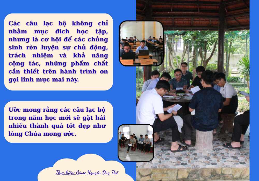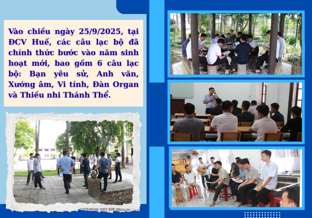Vào chiều ngày 25/9/2025, 6 câu lạc bộ đã chính thức bước vào năm sinh hoạt mới: câu lạc bộ yêu sử, câu lạc bộ vi tính, câu lạc bộ xướng âm, câu lạc bộ tiếng Anh, câu lạc bộ Thiếu nhi Thánh Thể, câu lạc bộ đàn organ.