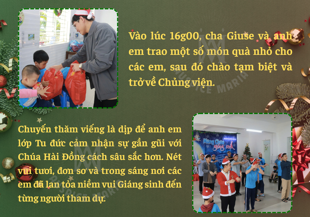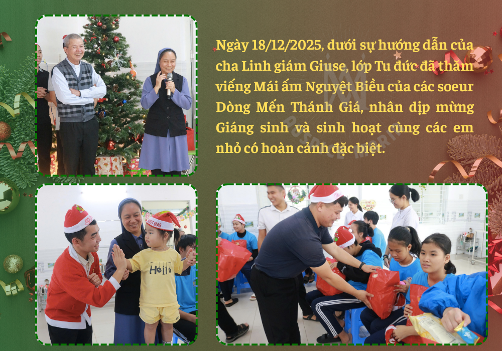 Chiều thứ Năm, ngày 18/12/2025, Lớp Tu Đức thăm các em có hoàn cảnh đặc biệt tại Mái ấm Nguyệt Biều, do quý nữ tu Dòng Mến Thánh Giá Huế quản lý. Đây cũng là dịp mừng Lễ Giáng Sinh với các em.