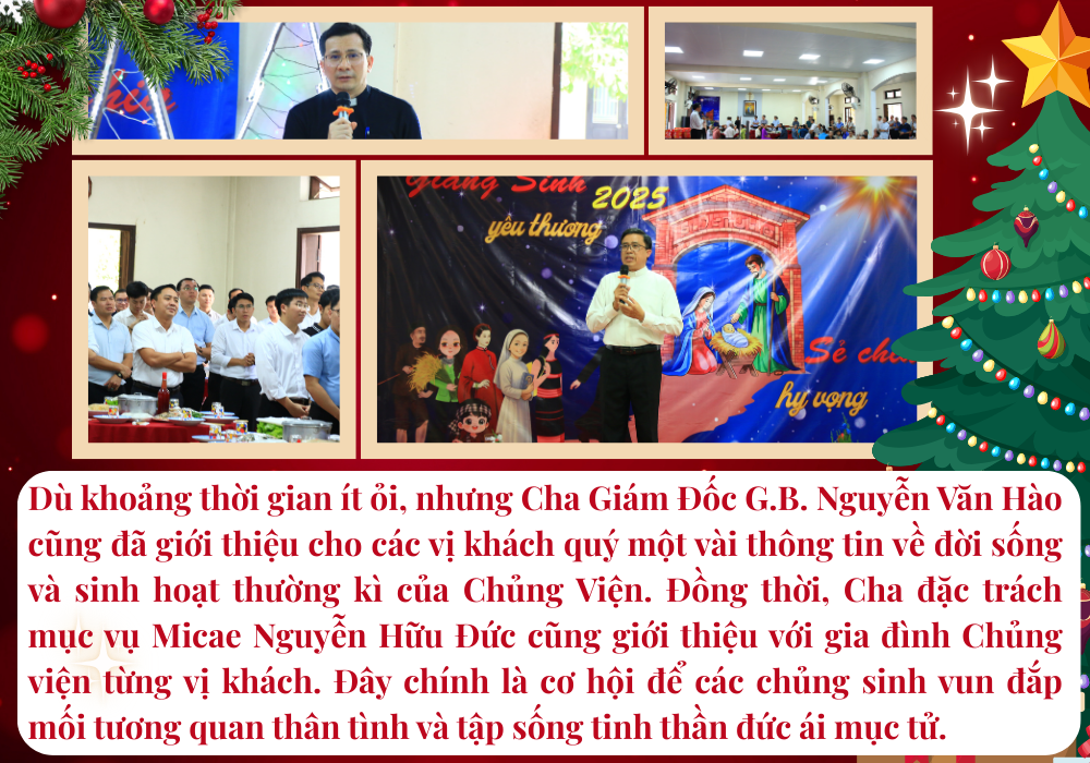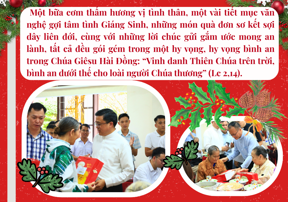 Trưa 24/12/2025, Gia đình Chủng viện tổ chức mừng lễ Giáng Sinh với những anh chị em có hoàn cảnh khó khăn, với những tiết mục văn nghệ, phát quà…. Chính Đức Lêô XIV cũng khuyên các Kitô hữu tổ chức một bữa ăn cho người nghèo nhân dịp Giáng Sinh này.