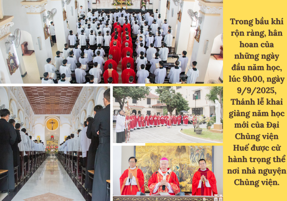 Trong bầu khí hân hoan của những ngày đầu năm học, lúc 9g00, ngày 9/9/2025, Thánh lễ khai giảng năm học mới của Đại Chủng viện Huế được cử hành trọng thể tại nhà nguyện Chủng viện.