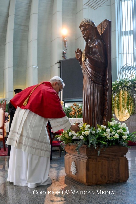 Hình ảnh đồng xu Syria được tìm thấy giữa những đồng xu Li-Băng trong túi bố thí đã trở thành một biểu tượng mạnh mẽ đối với ngài: “Điều đó nhắc nhở chúng ta rằng, trong đức ái, mỗi người đều có điều gì đó để cho đi và lãnh nhận, và việc trao tặng cho nhau làm phong phú cho mỗi người chúng ta và đưa chúng ta đến gần Chúa hơn”. Lấy lại lời của vị tiền nhiệm của ngài là Đức Bênêđictô XVI, về “chiến thắng của tình yêu trên hận thù”, Đức Thánh Cha nhấn mạnh rằng chỉ có con đường này mới cho phép chúng ta đối mặt với những bất công và lạm dụng vốn vẫn đang gây đau khổ cho rất nhiều gia đình.