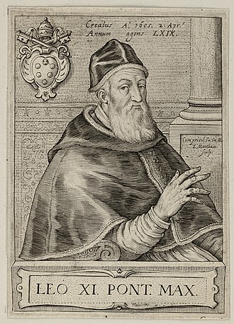 Triều đại giáo hoàng rất ngắn ngủi của Đức Lêô XI vào năm 1605 (26 ngày) để lại rất ít dấu vết, nhưng ngài là hệ quả lôgic của một sự nghiệp giám mục và giáo hoàng rực rỡ. Trước khi được bầu, Hồng y Alexandre de Medicis đã đóng vai trò quyết định trong mối quan hệ của Tòa Thánh với nước Pháp của Henri IV, một vị vua theo đạo Tin lành đã trở lại đạo Công giáo vào năm 1593.