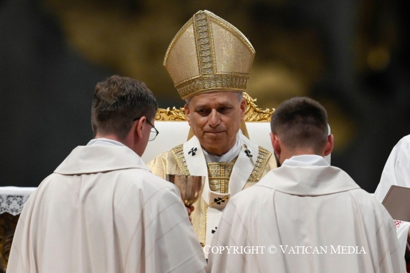 Do đó, tôi mời gọi anh em hôm nay, trước Thánh Tâm Chúa Kitô, hãy đổi mới lời thưa “xin vâng” của anh em với Thiên Chúa và với dân thánh của Ngài. Hãy để cho ân sủng uốn nắn anh em, hãy giữ lấy ngọn lửa của Chúa Thánh Thần đã nhận được khi anh em chịu chức để, khi kết hiệp với Người, anh em có thể trở thành bí tích tình yêu của Chúa Giêsu trong thế giới. Đừng sợ sự mong manh của anh em: quả thế, Chúa không tìm kiếm những linh mục hoàn hảo, nhưng là những trái tim khiêm nhường, sẵn lòng hoán cải và sẵn sàng yêu thương như chính Người đã yêu thương chúng ta.