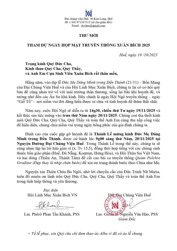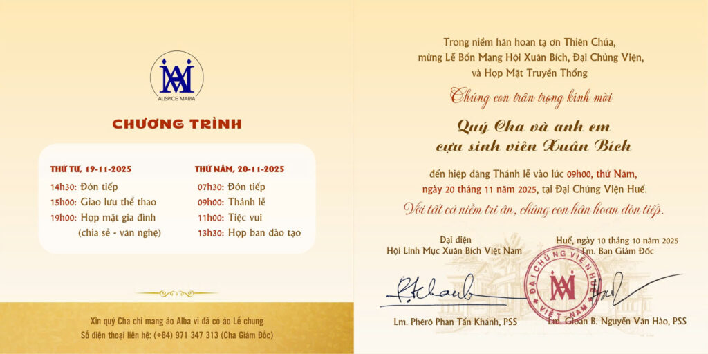 Năm nay, cuộc Hội Ngộ sẽ diễn ra từ 14g30, chiều thứ Tư ngày 19/11/2025 và kết thúc sau tiệc mừng vào trưa thứ Năm ngày 20/11/2025.