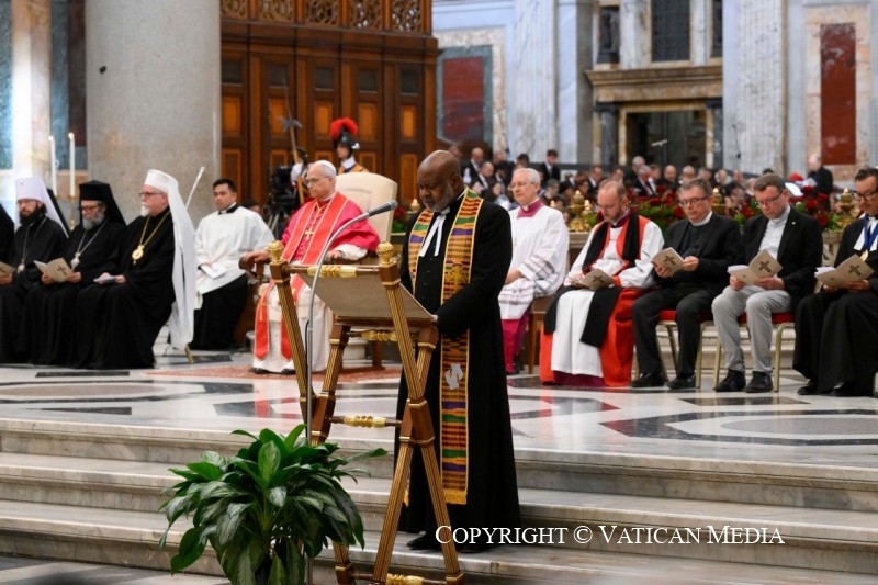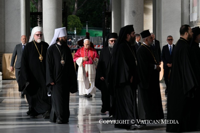 Khi chúng ta đứng dưới chân thập giá Chúa Kitô, phương thế ơn cứu độ của chúng ta, cũng được diễn tả như là ‘niềm hy vọng của các Kitô hữu’ và là ‘vinh quang của các vị tuẫn đạo’ (x. Kinh chiều Phụng vụ Byzatine Lễ Suy Tôn Thánh Giá), tôi chào đón những vị đại diện của các Giáo Hội Chính Thống, các Giáo Hội Tây Phương Cổ, các Cộng đoàn Kitô giáo, và các Tổ chức Đại Kết, cảm ơn vì đã nhận lời mời tham dự buổi cử hành này. Tôi xin gửi lời chào thân ái và bình an đến tất cả anh chị em đang hiện diện ở đây!