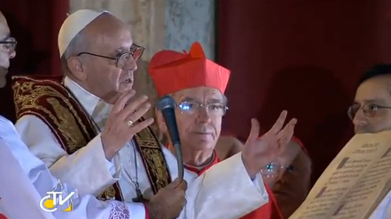Lúc 19 giờ 6 phút tối hôm 13-3-2013, khói trắng bắt đầu xông ra từ ống khói trên mái nhà nguyện Sistina, giữa tiếng reo vui mừng của hàng chục ngàn tín hữu kiên nhẫn đứng chờ đợi hàng giờ trước đó dưới trời mưa.