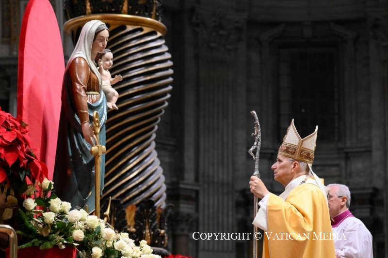 Thưa anh chị em, việc chiêm ngắm Ngôi Lời nhập thể khơi dậy một lời nói mới mẻ và chân thật trong toàn Giáo hội: vì thế, chúng ta hãy loan báo niềm vui Giáng Sinh, vốn là lễ của đức tin, đức mến và đức cậy. Đó là lễ của đức tin, vì Thiên Chúa làm người, sinh ra từ Đức Trinh Nữ. Đó là lễ của đức mến, vì ân huệ của Người Con, Đấng Cứu Chuộc, được thể hiện trong sự tận tâm huynh đệ. Đó là lễ của đức cậy, vì Chúa Giêsu Hài Nhi nhóm lên niềm hy vọng ấy trong lòng chúng ta, biến chúng ta thành sứ giả của hòa bình. Với những nhân đức ấy trong trái tim, không sợ bóng tối, chúng ta có thể ra đi đón chào bình minh của ngày mới.