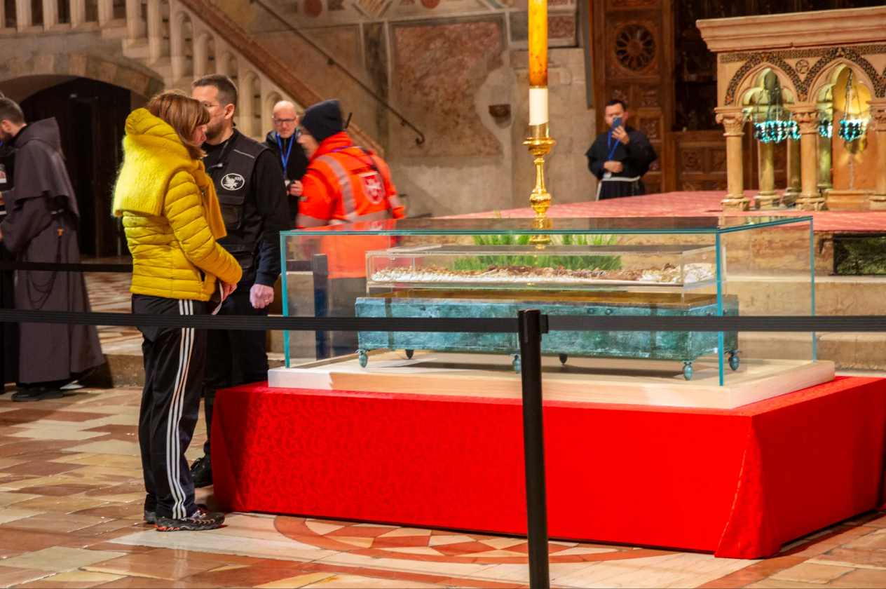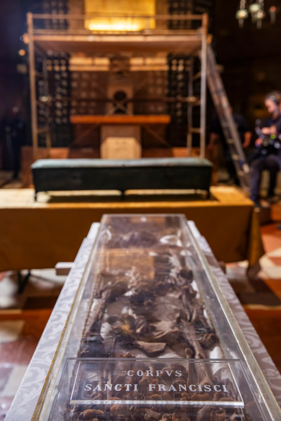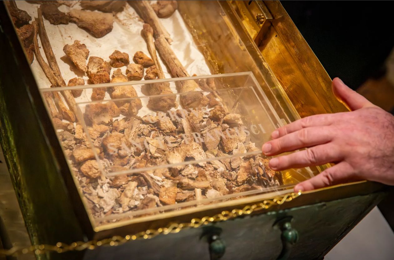 Thánh tích của Thánh Phanxicô đã được trưng bày công khai lần đầu tiên kể từ Chúa Nhật, ngày 22/2, tại Assisi, Ý, nhân kỷ niệm 800 năm ngày mất của ngài. Hơn 400.000 người đã đặt chỗ để chiêm bái hài cốt của ngài, với 15.000 lượt khách mỗi ngày vào các ngày trong tuần và lên đến 19.000 lượt vào các ngày thứ Bảy và Chúa Nhật. Hộp đựng thánh tích được làm bằng kính plexiglass, cho phép các tín hữu hành hương nhìn thấy toàn bộ hài cốt của Thánh Phanxicô. Bộ xương nhỏ, với hộp sọ bị hư hại trong quá trình vận chuyển đến vương cung thánh đường vào thế kỷ XIII, được đặt trên một tấm lụa trắng.