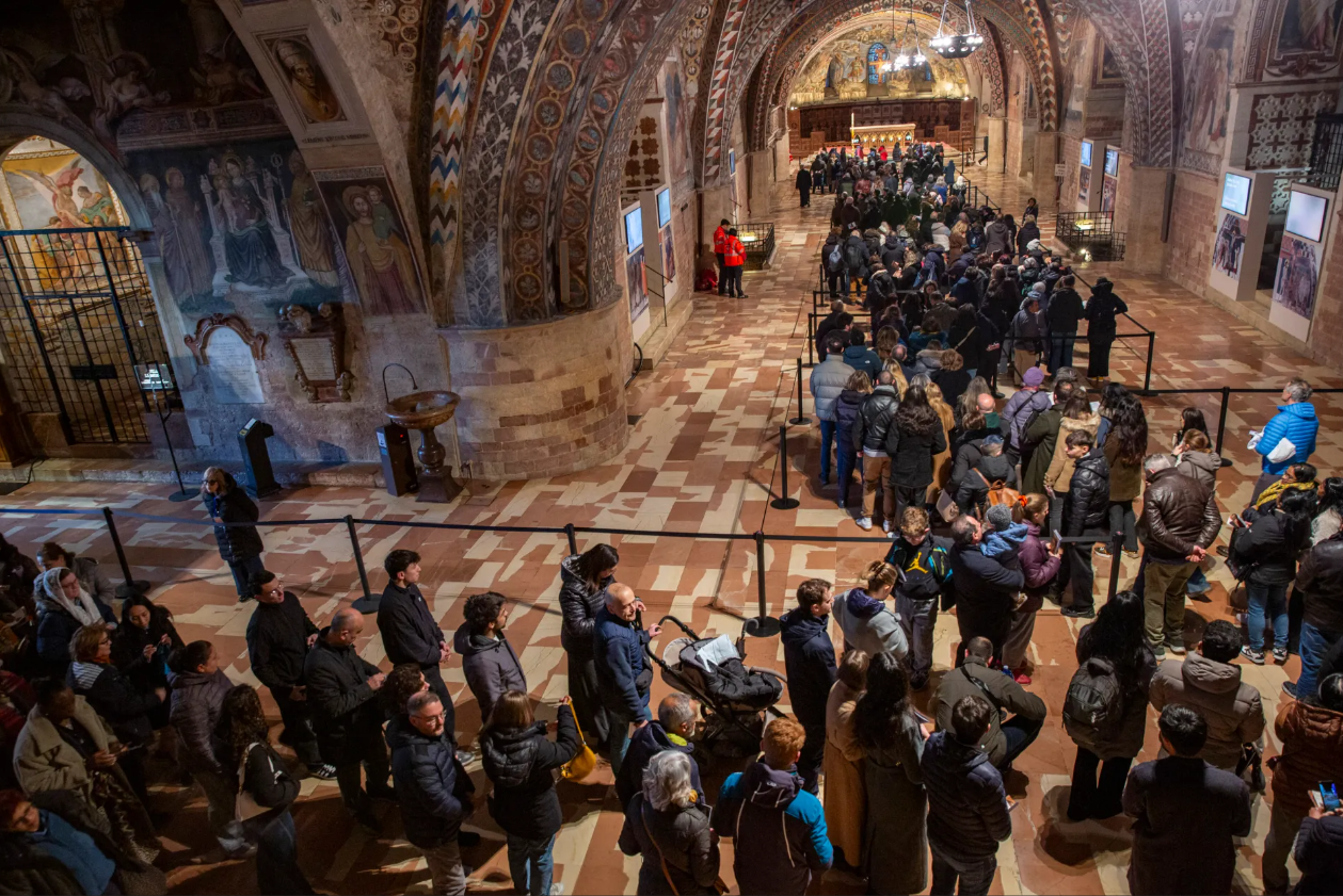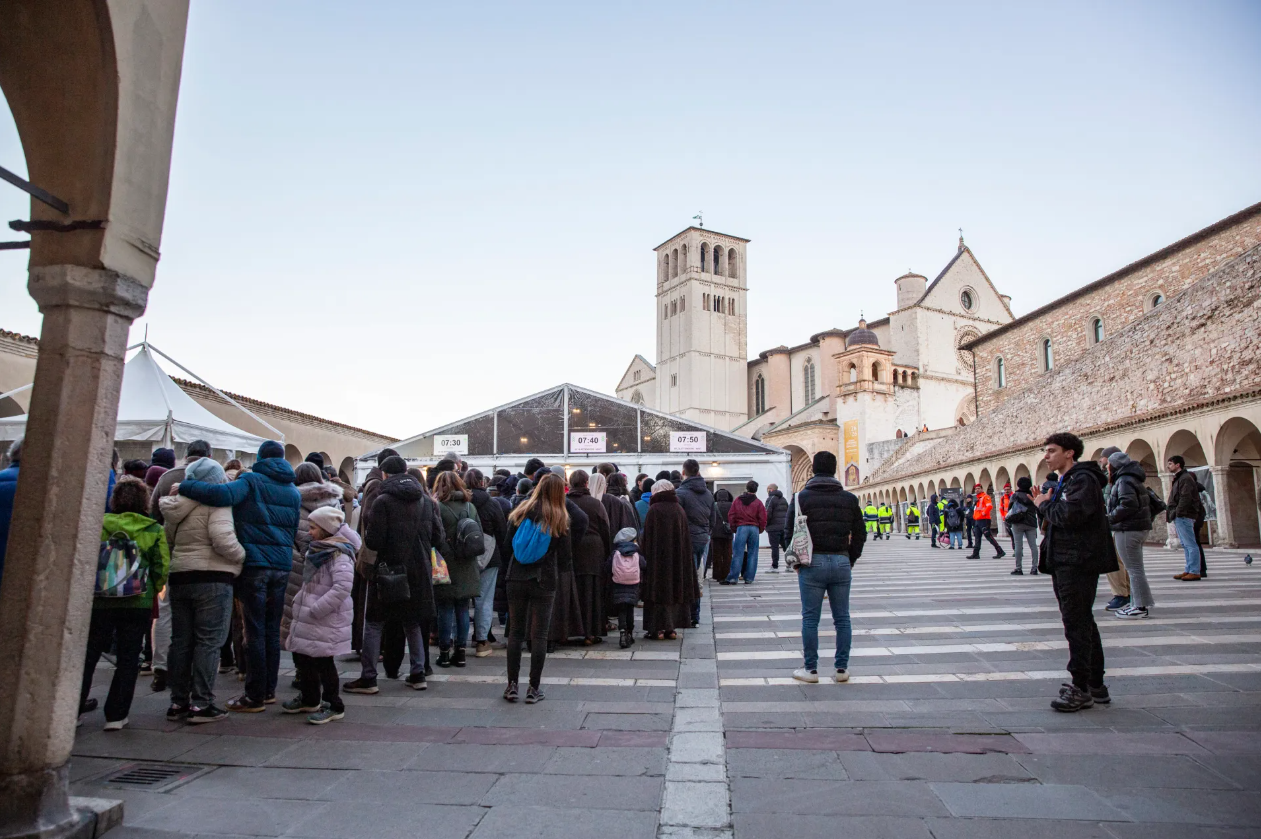 Bên trong vương cung thánh đường, bầu không khí vẫn giản dị: "Không có gì đặc biệt để làm, chỉ đơn giản là để chiêm bái Thánh Phanxicô; đây không phải là phim trường," Thầy Giulio Cesareo, giám đốc truyền thông của tu viện dòng Phanxicô ở Assisi, giải thích. Sự kiện này khẳng định lòng kính trọng của người Ý đối với vị thánh bảo trợ của họ, mà ngày lễ 4/10 kính ngài sẽ một lần nữa trở thành ngày lễ quốc gia ở Ý. Lần đầu tiên sau 50 năm.