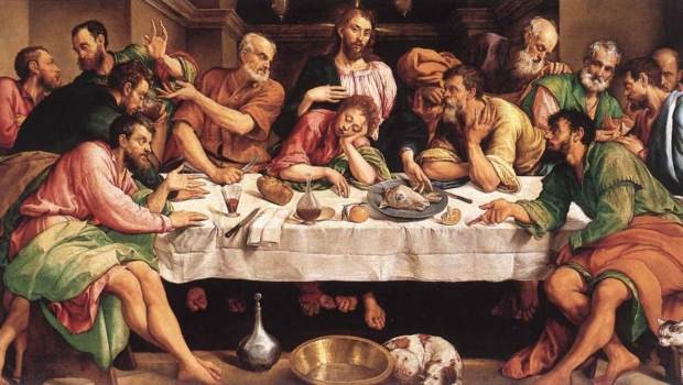 Trong những bức tranh khác, con mèo được miêu tả đang đánh nhau với một con chó nhỏ - ví dụ, trong bức bích họa của Cosimo Rosselli ở Nhà nguyện Sistine và trong bức tranh của Girolamo di Romano, được biết đến với tên gọi "Il Romanino," trong phòng ăn của nhà thờ Sainte-Justine ở Padua. Vào thời Trung cổ, con chó tượng trưng cho lòng trung thành; do đó, có khả năng cuộc chiến với con mèo tượng trưng cho cuộc đấu tranh giữa thiện và ác. Thật vậy, trong Bữa Tiệc Ly, Chúa Giêsu đã báo trước cuộc Thương khó và cái chết của Người, được mô tả như cuộc chiến thắng của Chúa Kitô trước hoàng tử của thế gian này là ma quỷ, hoặc như một cuộc chiến thắng trước sự dữ hay sự thù hận.